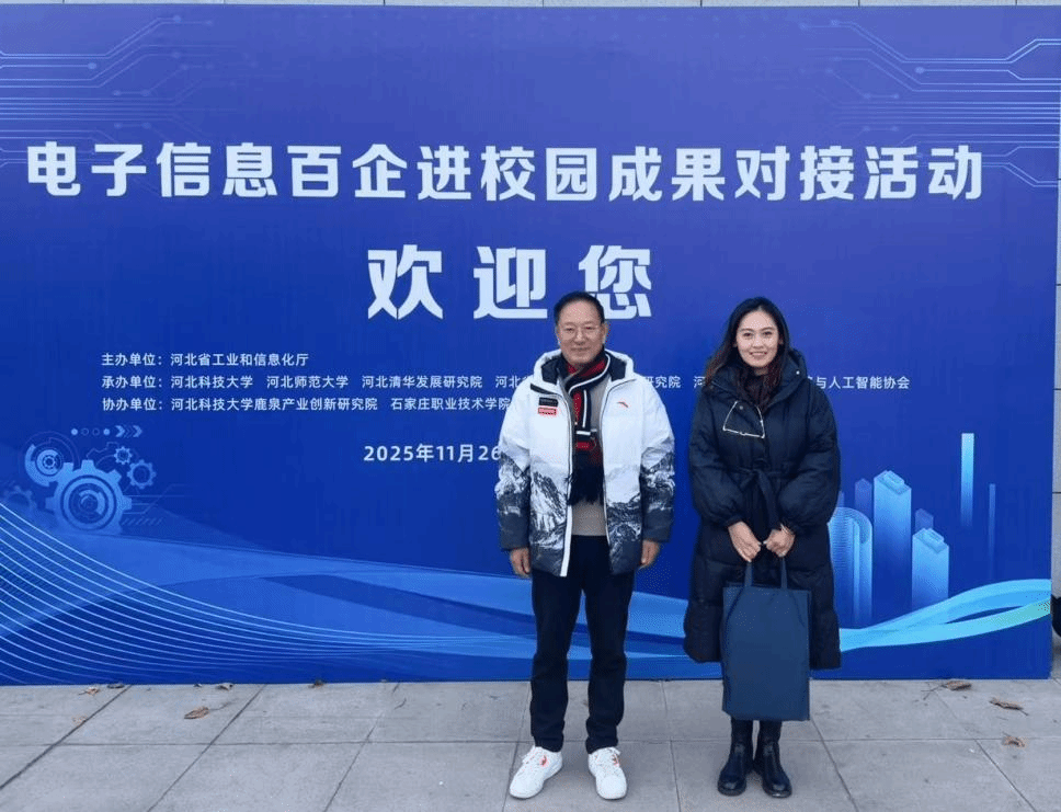 为深入贯彻河北省关于电子信息产业高质量发展的战略部署,促进产学研深度融合与成果转化,推动产业人才培育与技术创新协同发展,11月26日,由河北省工业和信息化厅主办的以“深化产教融合,促进成果转化”为主题的“电子信息百企进校园成果对接活动”在河北科技大学图书馆报告厅隆重举行。河北工程技术学院科研与产教融合处王俊昆、周玉妹两位同志应邀参会,进行成果发布,与省内外 200 余名高校院所、重点企业、园区及金融机构代表共话产学研合作,共探产业创新机遇。