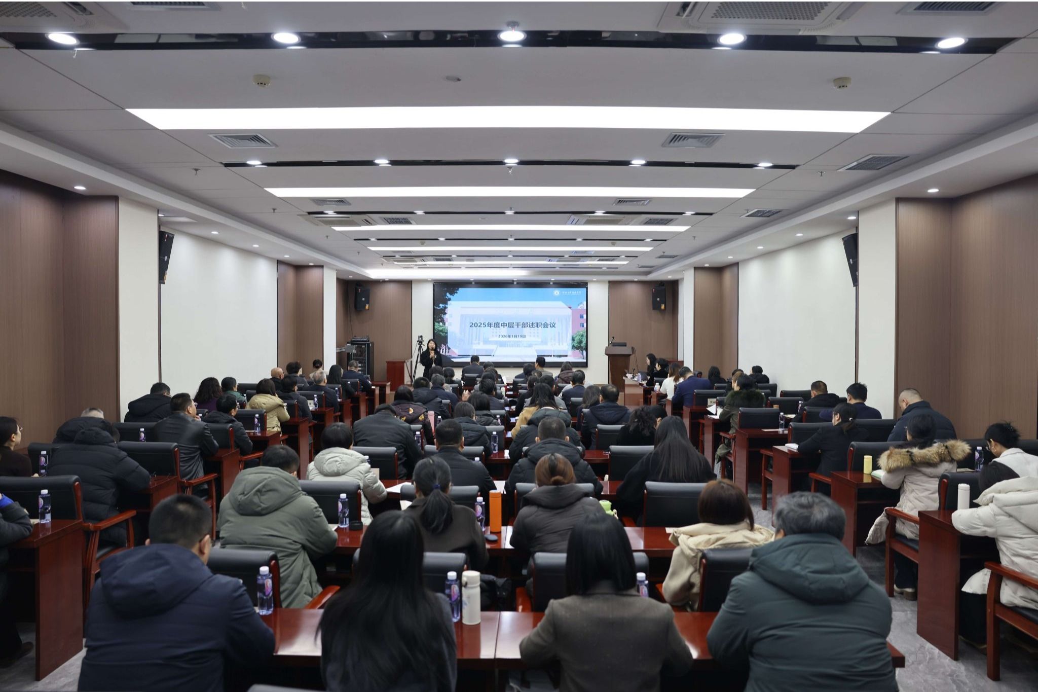 1月19日,我校2025年度中层干部述职大会在会议中心第一会议室召开。校领导班子出席会议,全体中层干部、董事会办公室、纪检督察处、监事会成员参加会议。会议由副校长王...