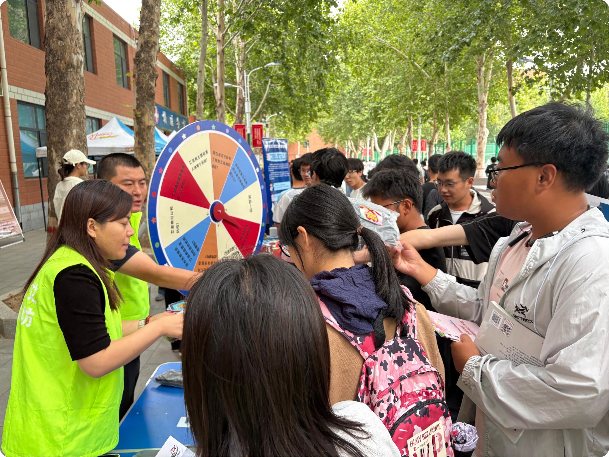 活动现场,工作人员向师生发放了安全套、HIV检测试剂盒等物品,倡导安全性行为,引导科学预防,从源头降低艾滋病传播风险。桥西区疾控中心、后勤处疾控与医保中心及校团委志愿服务指导中心还联合设置了互动环节,邀请学生在便利贴上写下防艾标语,并张贴于主题展板展示。此外,现场还发放了内容丰富的防艾宣传手册及实用小礼品,进一步扩大了宣传覆盖面。