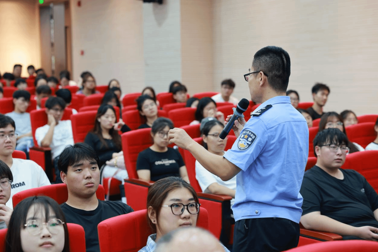讲座中,桥西公安分局张宇警官以“法制宣传进校园之校园安全宣传”为主题,通过剖析真实的电诈案例,强调了遵纪守法的重要性,并以趣味问答形式帮助同学们增强防范意识。