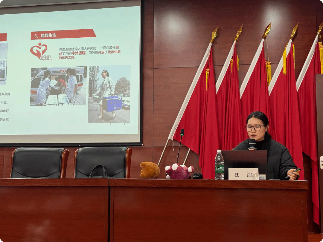 活动伊始,我们非常荣幸地邀请到了河北省血液中心保障科宣传组专家沈洁老师,为同学们带来了一场干货满满、生动有趣的无偿献血科普讲座。沈洁老师以《关于无偿献血的那些事儿》为主题,从科学角度出发,娓娓道来,详细介绍了国家无偿献血的政策,特别是同学们关心的“三免”荣誉政策,让奉献者得到社会的礼遇。“手把手”带领大家熟悉从报名登记、健康征询、快速检测到休息领证的全流程,打消了同学们对献血过程的陌生与顾虑。