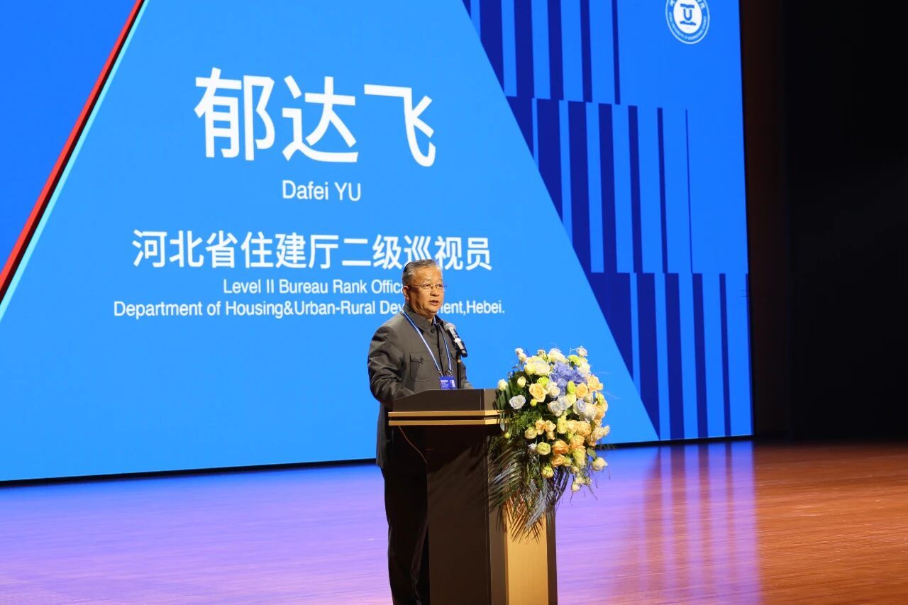 河北工程技术学院党委书记常新平致欢迎辞。他对远道而来的国内外嘉宾、学者和建筑大师表示热烈欢迎与诚挚感谢,并简要介绍了学校的发展历程、成就以及“十五五”发展规划的基本构想。河北省高等教育学会会长王廷山、河北省住建厅二级巡视员郁达飞分别致辞,并对大会的召开表示祝贺,并从不同角度解读了国家关于城市更新的相关政策。