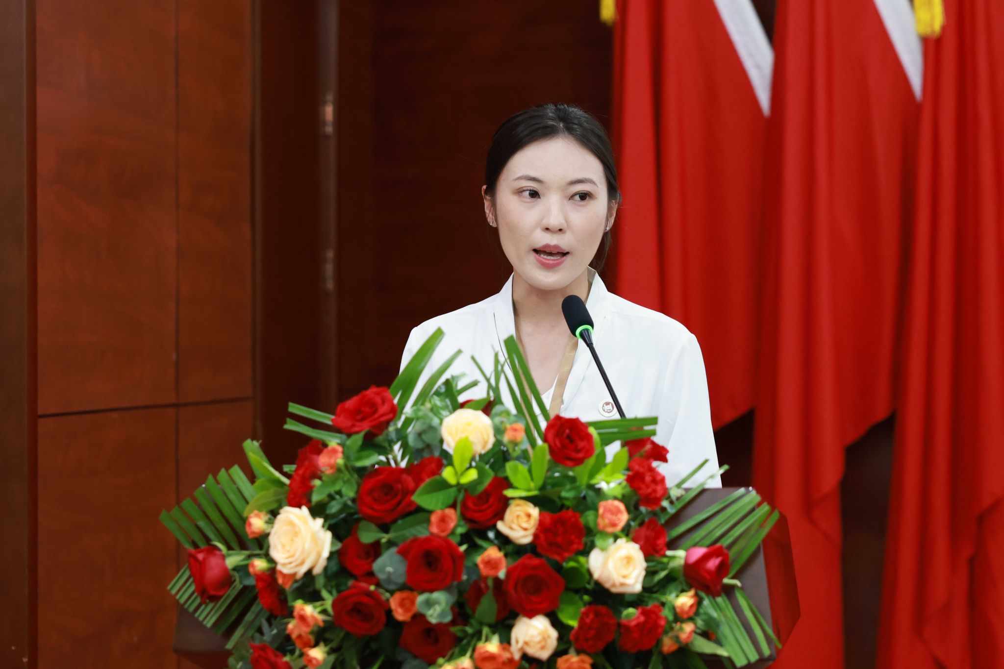 商学院辅导员孙晓楠代表新教师发言。她的发言既传递出新教师群体满溢的朝气与滚烫的教育热情,也展现出他们从“准教师”迈向“真教育人”的坚定与从容,期待新教师们熔铸初心为实干,书写出专属自己的教育篇章。